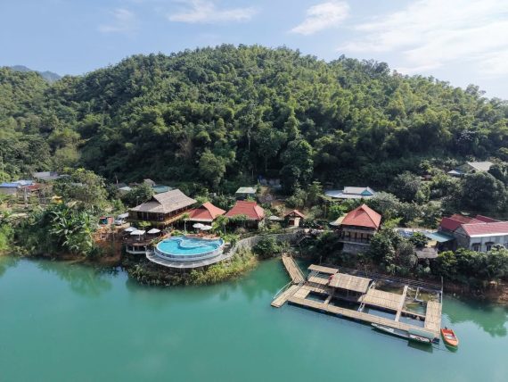 - Thuê tàu tham quan lòng hồ Sông Đà, đền và động Thác Bờ, đảo dừa